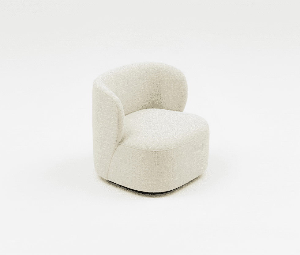 Poltrona de diseño suave y curvado, brindando comodidad. Respaldo bajo y envolvente para una postura relajada. Perfecta para ambientes modernos que buscan añadir un toque de frescura y confort.