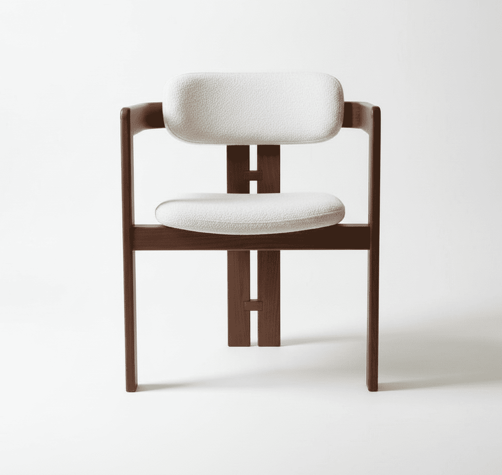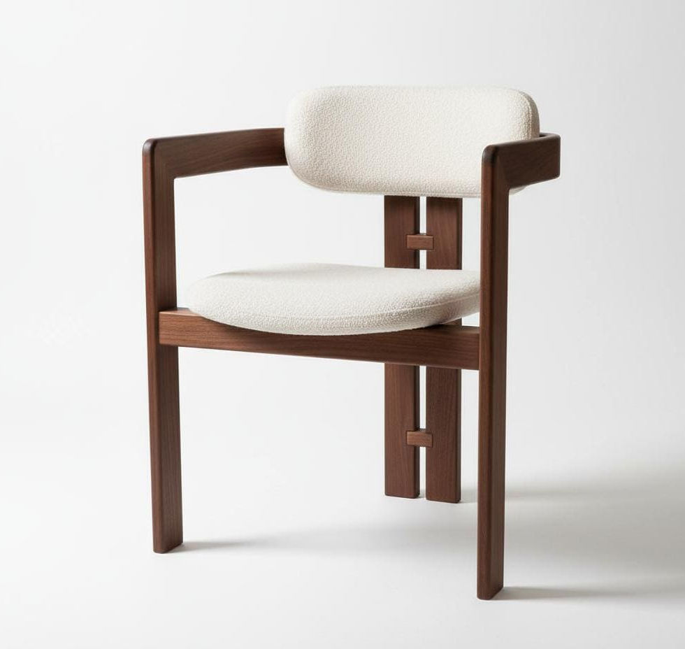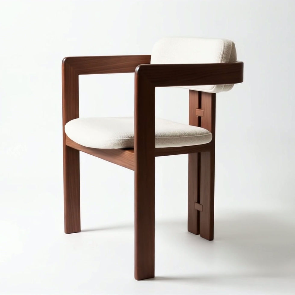 Silla con detalles estructurales y estilo sofisticado, líneas rectas y formas geométricas. Respaldo cómodo y soporte ergonómico, ideal para comedores o salas modernas.