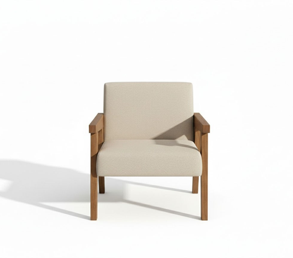 Poltrona de diseño versátil que se adapta con facilidad a distintos espacios. Su estructura en madera y el tapizado de alta densidad ofrecen comodidad y una estética moderna pensada para uso diario.